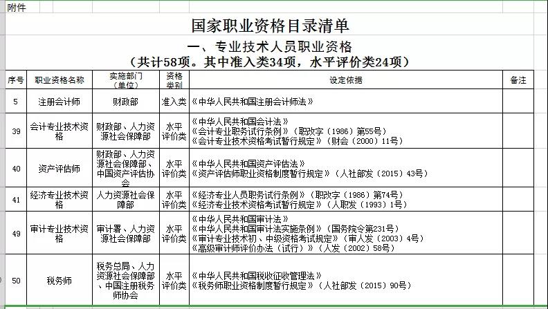 注:会计类证书不在技能范围内,人社部明确表示:职业资格证书是表明劳动者具有从事某一职业所必备的学识和技能的证明,而会计专业技术资格是指担任会计专业职务的任职资格,两证之间存在差别。